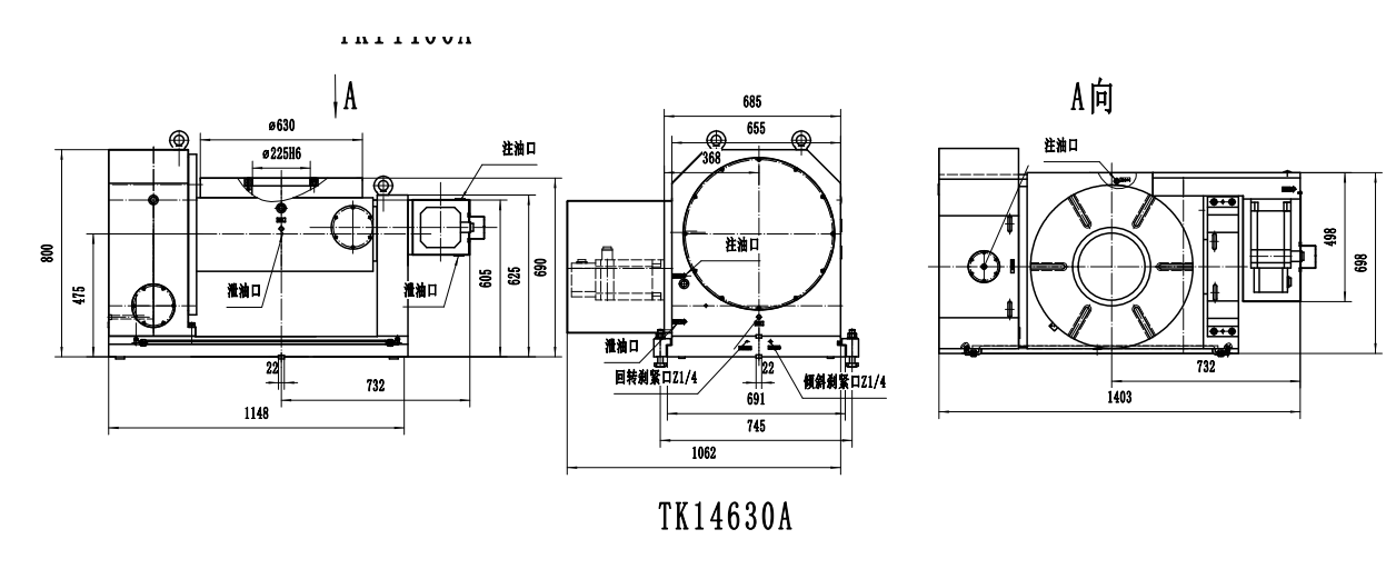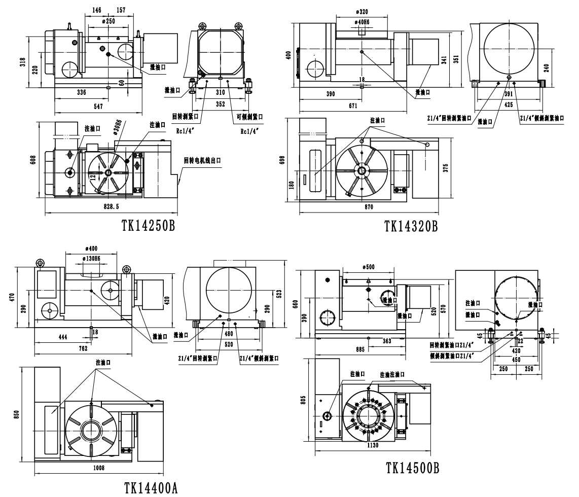 TK14系列數(shù)控可傾回轉(zhuǎn)工作臺主要用于數(shù)控機(jī)床加工中心機(jī)床上,可利用機(jī)床的兩個(gè)控制坐標(biāo)控制轉(zhuǎn)臺的回轉(zhuǎn)和傾斜,也可直接利用本轉(zhuǎn)臺配套的數(shù)控裝置與機(jī)床聯(lián)接完成所需的工作循環(huán)。它可以完成任意角度的孔、槽、平面類機(jī)械加工,以及曲線、凸輪等的加工,并可達(dá)到較高的精度。另外也可用于非數(shù)控鉆、銑、鏜類機(jī)床上,獨(dú)立完成等分和不等分的角度分度工作。